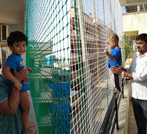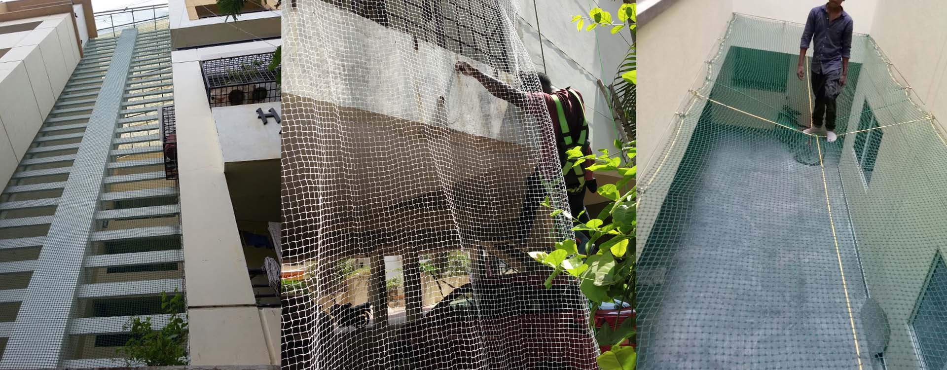 We are the skilled experts in fixing Safety nets for Balcony Safety Nets, Pigeon Safety Nets, Anti Bird Nets, Pigeon Nets for Balconies, Cricket Net Practice, Children Safety Nets, Construction Safety Nets, Duct Area Safety Nets, Building Safety Nets, Industrial Safety Nets, Swimming Pool Safety Nets Stairway Safety nets, Monkey Safety Nets, Terrace Top Nets, Glass Safety Nets, Car Parking Safety Nets, Coconut Tree Nets, All types of Safety Nets, HDPE Nets - Nylon Nets.